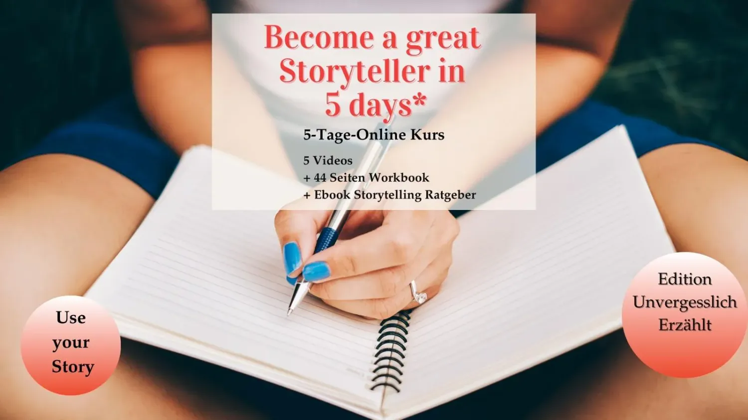 Ob Buch, Business oder Bühne – in dieser 5-tägigen Masterclass zeige ich Dir, wie Du Deine persönliche Geschichte kraftvoll einsetzt und endlich bei Dir ankommst.